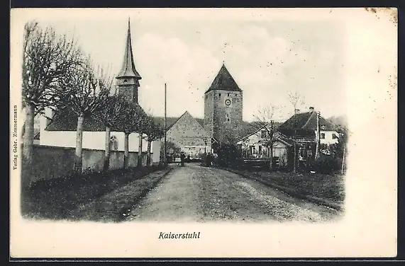 AK Kaiserstuhl, Strassenpartie, Blick zur Kirche