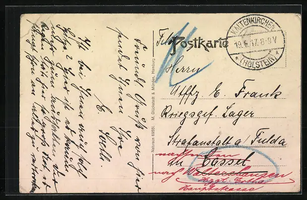 alte Ansichtskarte, gelaufen 1917, Eckknicke links u. rechts, guter Zustand