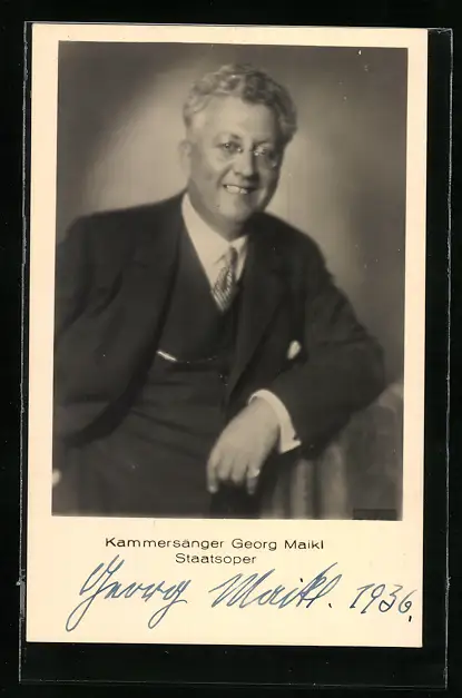 AK Kammersänger der Staatsoper Georg Maikl in Anzug und Krawatte, original Autograph