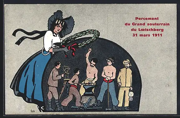 AK Kandersteg, Percement du Grand souterrain du Loetschberg 1911