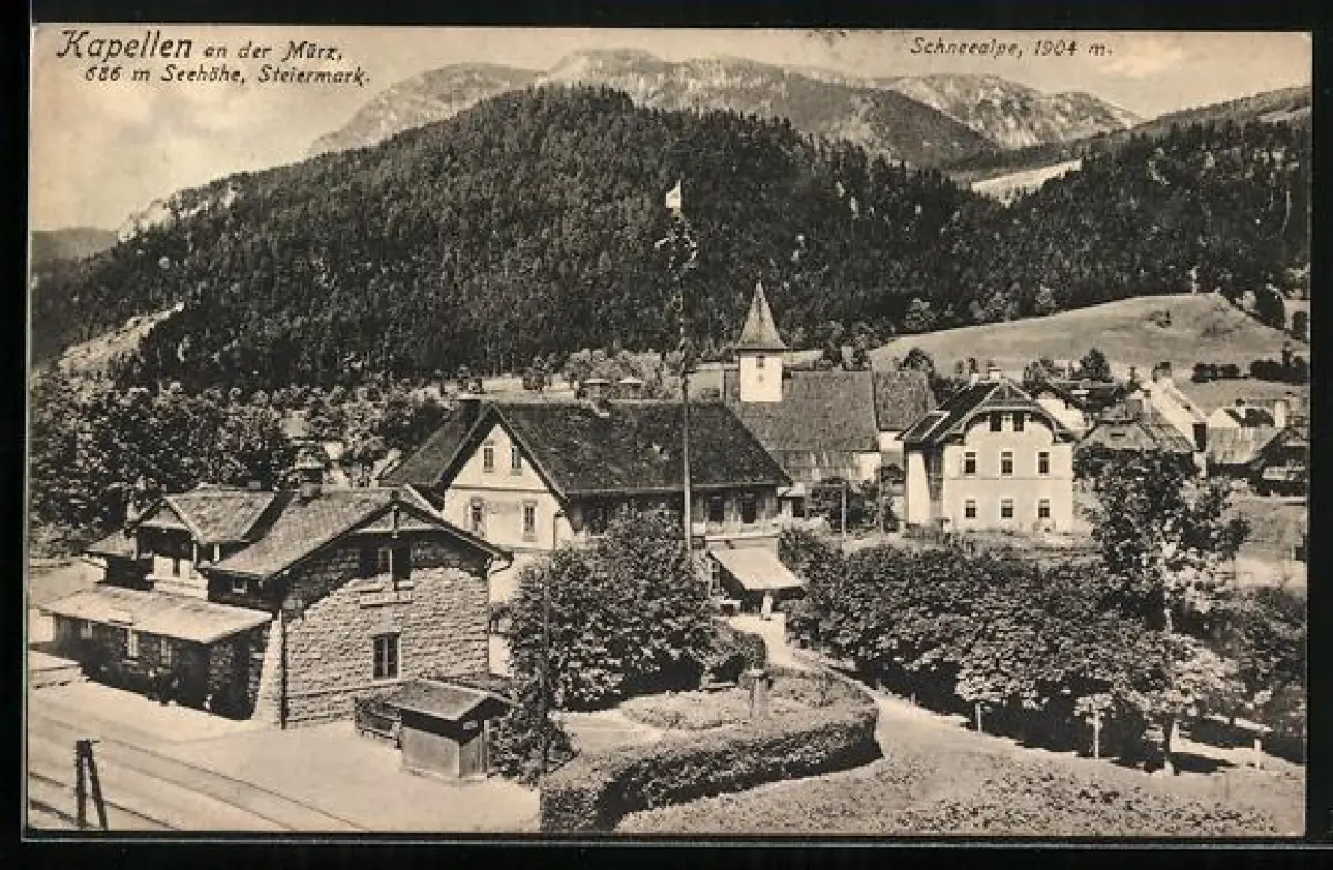 AK Kapellen an der Mürz, Ortsansicht mit Bahnhof