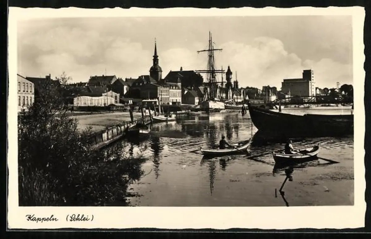 AK Kappeln /Schlei, Hafen, Kirche, Segelschiff