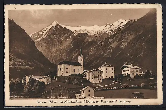 AK Kaprun, Ortsansicht mit Kitzsteinhorn im Kaprunertal