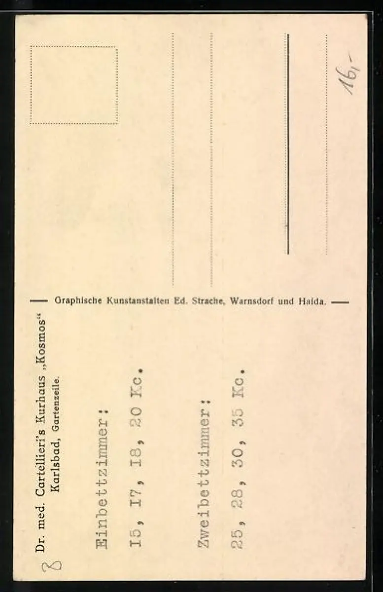 AK Karlsbad, Dr. Cartellieri`s Kurhaus Kosmos, Gartenzeile