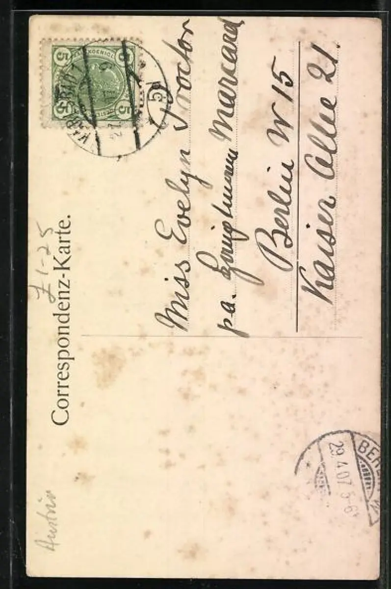 alte Ansichtskarte, gelaufen 1907, Stempelspur, Eckknick links unten, guter Zustand