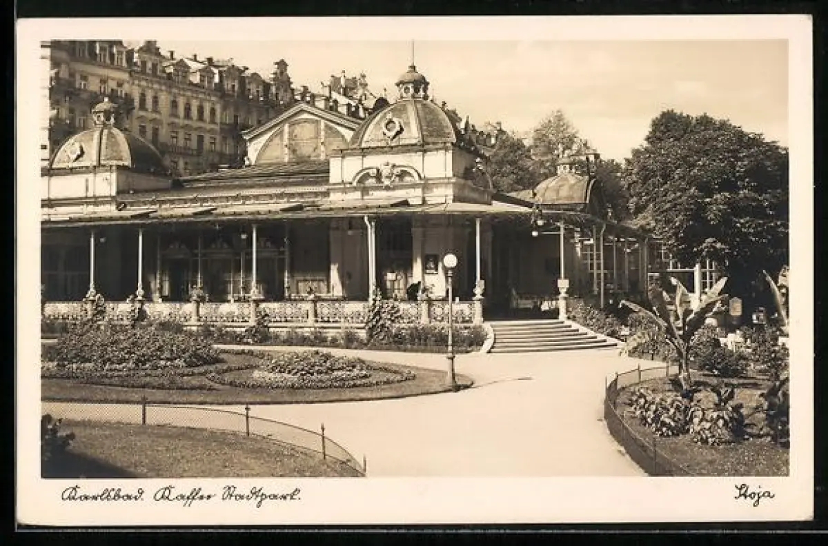 AK Karlsbad, Kaffee Stadtpark mit Anlagen