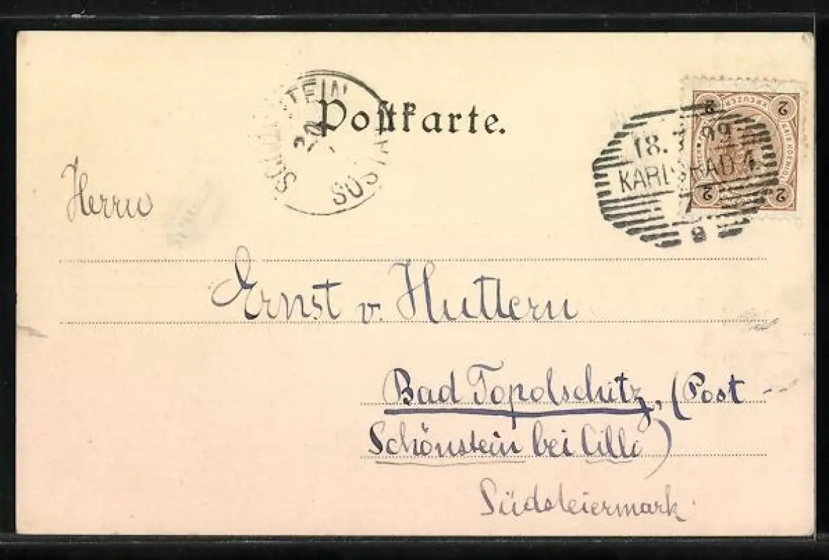 alte Ansichtskarte, gelaufen 1899, guter Zustand