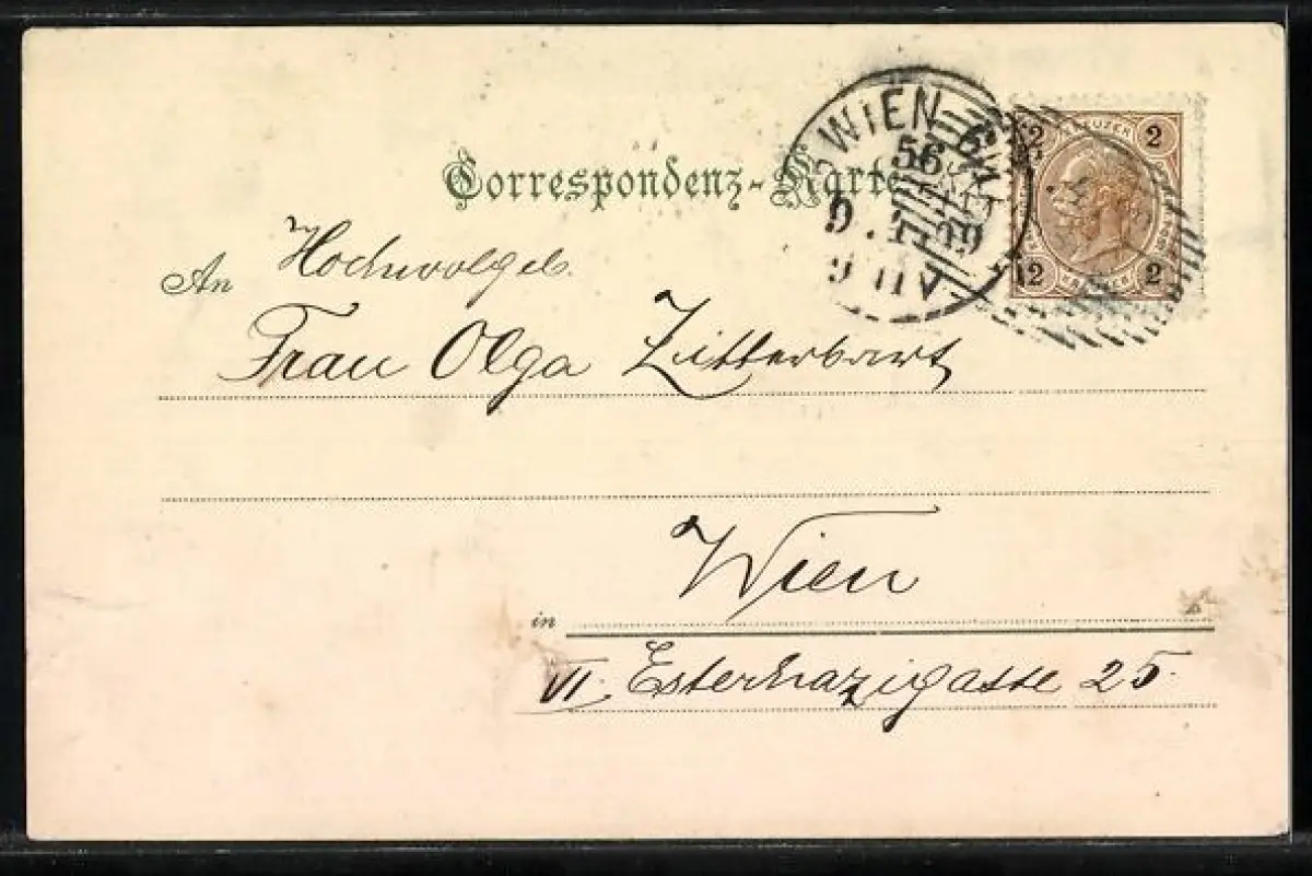 alte Ansichtskarte, gelaufen 1899, Bugspur re. unten, guter Zustand