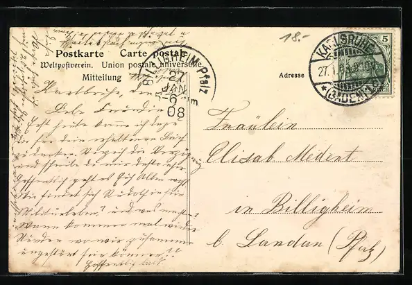 alte Ansichtskarte, gelaufen 1908, guter Zustand