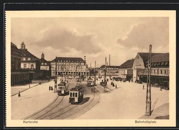 AK Karlsruhe, Bahnhofsplatz, Strassenbahn