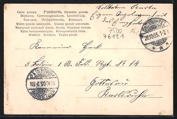 alte Ansichtskarte, gelaufen 1905, guter Zustand
