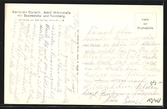 AK Karlsruhe-Durlach, Stadtkirche und Turmberg