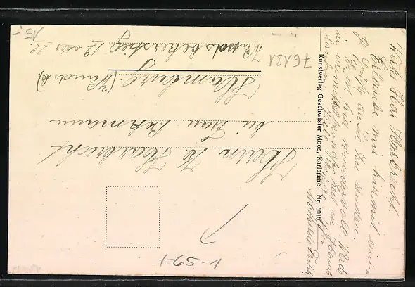 Personenbezogene Daten auf der Rückseite der Karte wurden durch blauen Textmarker unkenntlich gemacht. Die blauen Stellen sind auf die Vorderseite durchgeweicht und wirken sich negativ auf das Postkartenfoto aus