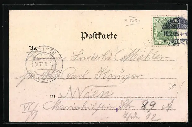 alte Ansichtskarte, gelaufen 1905, Stempelspur, guter Zustand