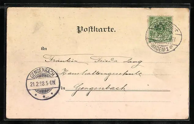 alte Ansichtskarte, gelaufen 1898, guter Zustand