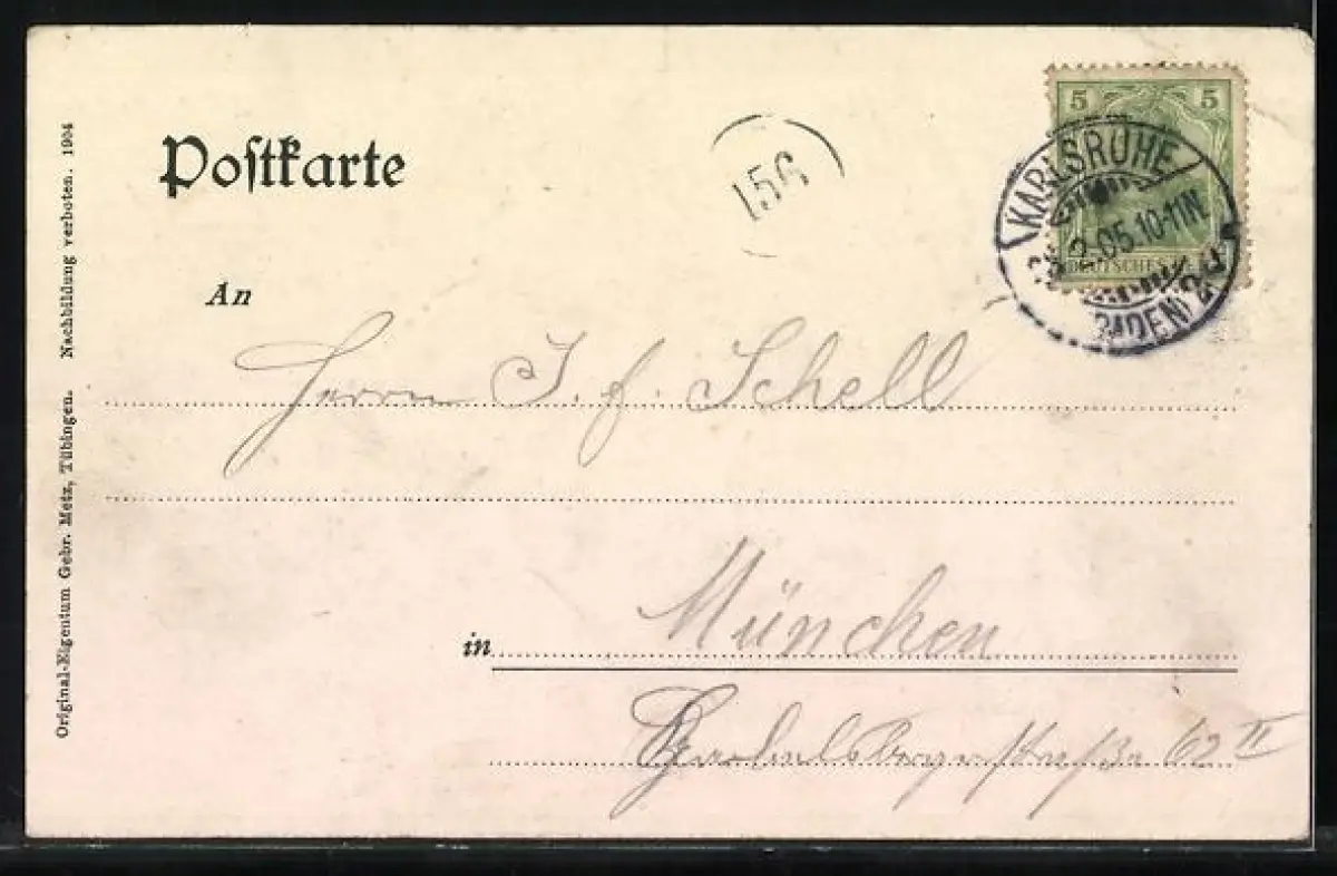 alte Ansichtskarte, gelaufen 1905, Eckknicke li., Stempelspur, guter Zustand