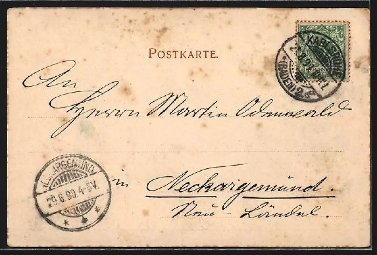 alte Ansichtskarte, gelaufen 1899, Eckknick re. oben, Stempelspur, guter Zustand