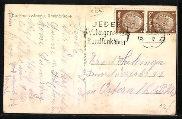 alte Ansichtskarte, gelaufen 1939, Bugspur u. Einrisse re. oben, Stempelspur, guter Zustand