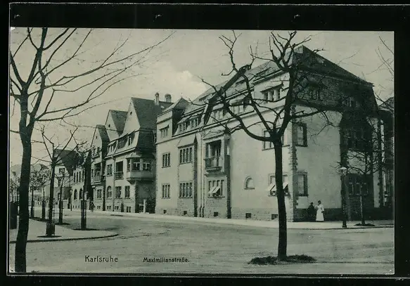 AK Karlsruhe, Maximilianstrasse, Hauserzeile und Kreuzung
