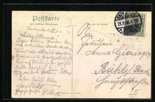 alte Ansichtskarte, gelaufen 1906, leicht fleckig, guter Zustand