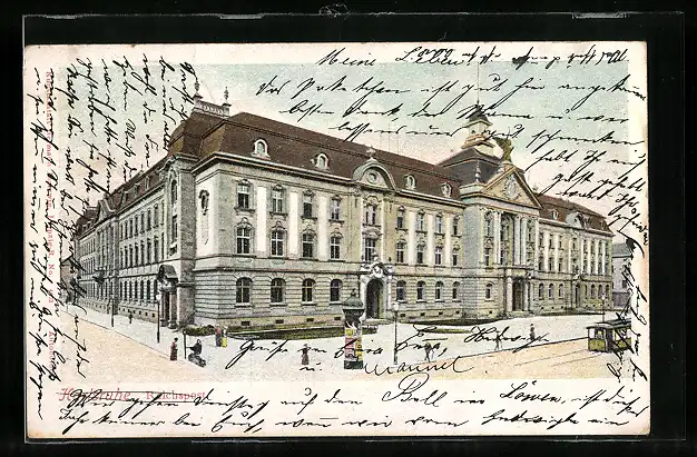 AK Karlsruhe, Reichspost Gebäude, Strassenpartie