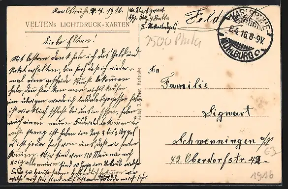 alte Ansichtskarte, gelaufen 1916, Stempelspur, guter Zustand
