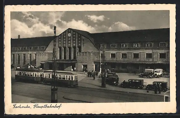 AK Karlsruhe, Strassenbahn am Hauptbahnhof