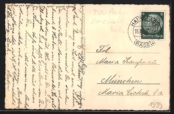 alte Ansichtskarte, gelaufen 1939, guter Zustand