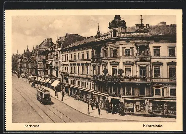 AK Karlsruhe, Strassenbahn auf der Kaiserstrasse