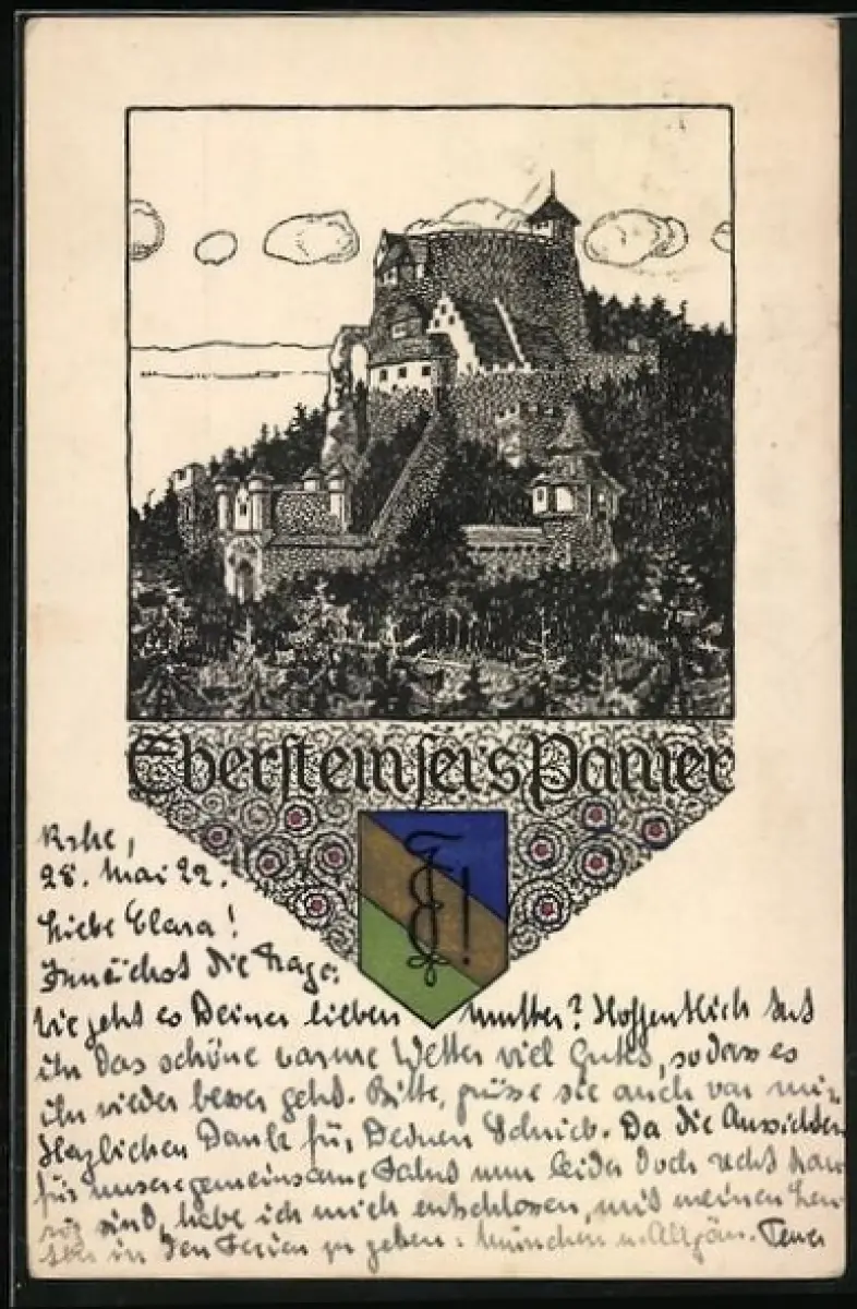 AK Karlsruhe, Studentenwappen Eberstein sei's Panier, Burg