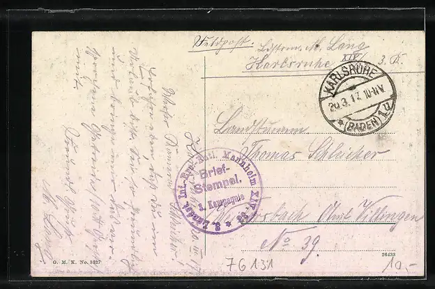 alte Ansichtskarte, gelaufen 1917, guter Zustand