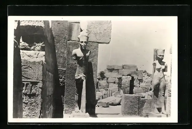 AK Karnak, Mittleres Reich 2100-1700 v. Chr., Ortspartie mit Statuen