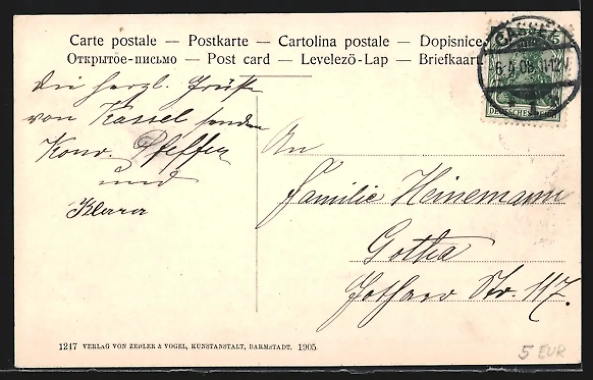 alte Ansichtskarte, gelaufen 1908, guter Zustand