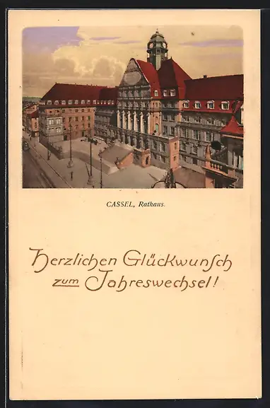 AK Kassel, Rathaus, Neujahrsgruss