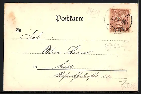 alte Ansichtskarte, gelaufen 1899, guter Zustand