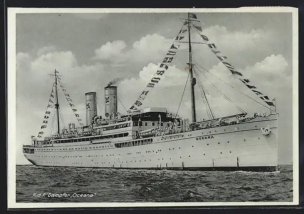AK K.d.F. Dampfer Oceana in Flaggengala auf offener See