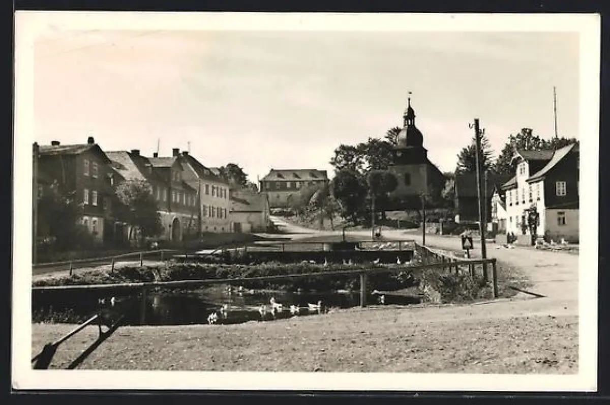 AK Keila, Teich, Kirche, Ortsansicht