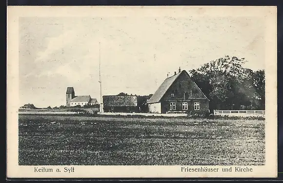 AK Keitum a. Sylt, Blick auf Friesenhäuser und Kirche