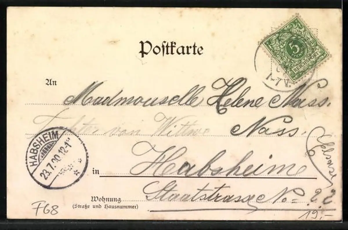 alte Ansichtskarte, gelaufen 1900, Eckknick re. unten, guter Zustand
