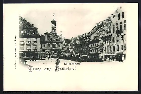 AK Kempten / Allgäu, Rathausplatz mit Geschäften