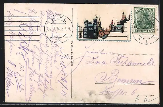 alte Ansichtskarte, gelaufen 1914, Eckknick oben re., guter Zustand