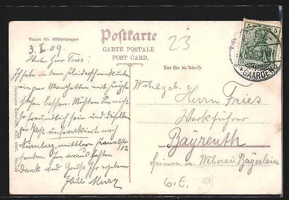 alte Ansichtskarte, gelaufen 1909, guter Zustand