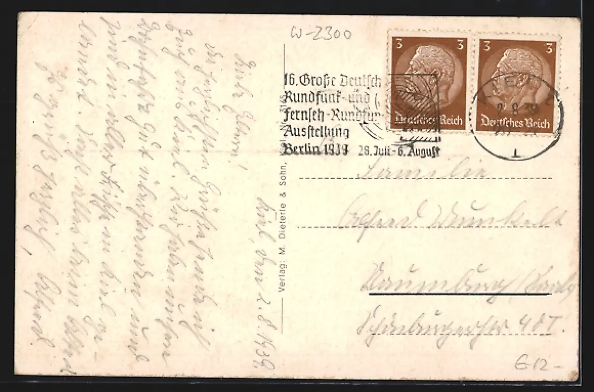 alte Ansichtskarte, gelaufen 1939, guter Zustand