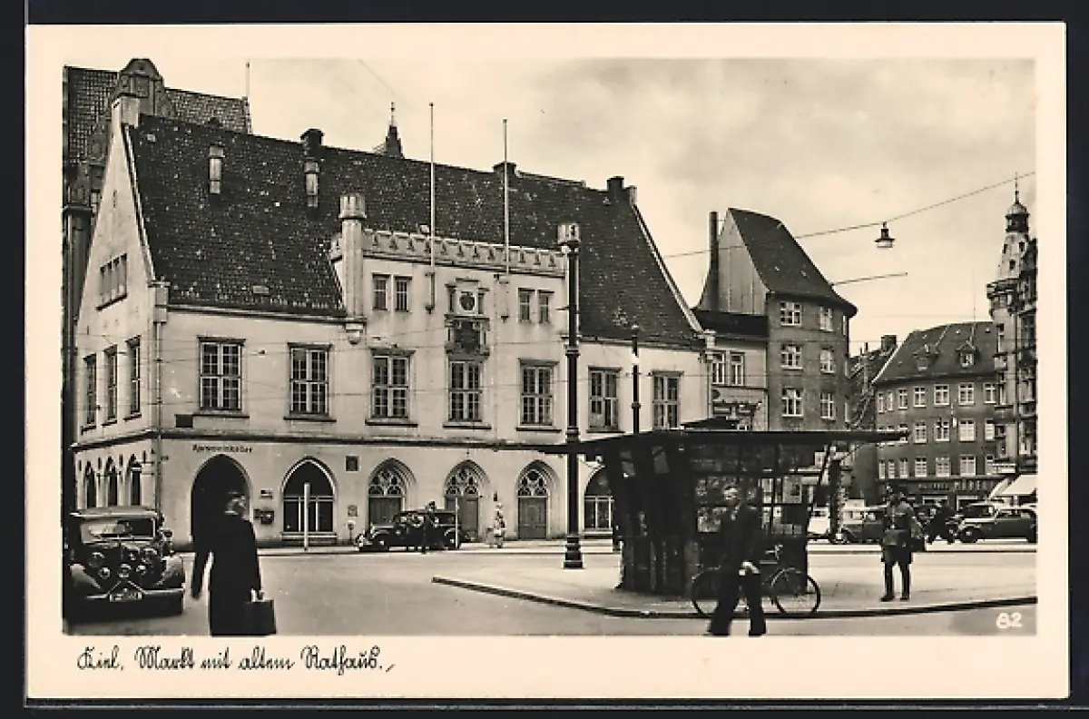AK Kiel, Markt mit altem Rathaus und Ratsweinkeller