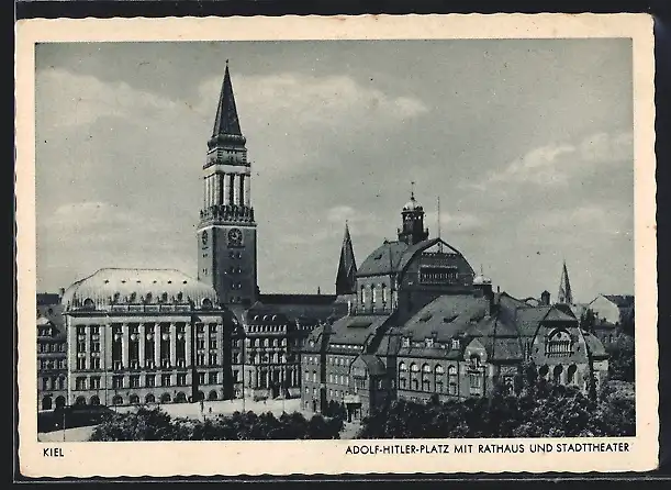 AK Kiel, Platz mit Rathaus und Stadttheater