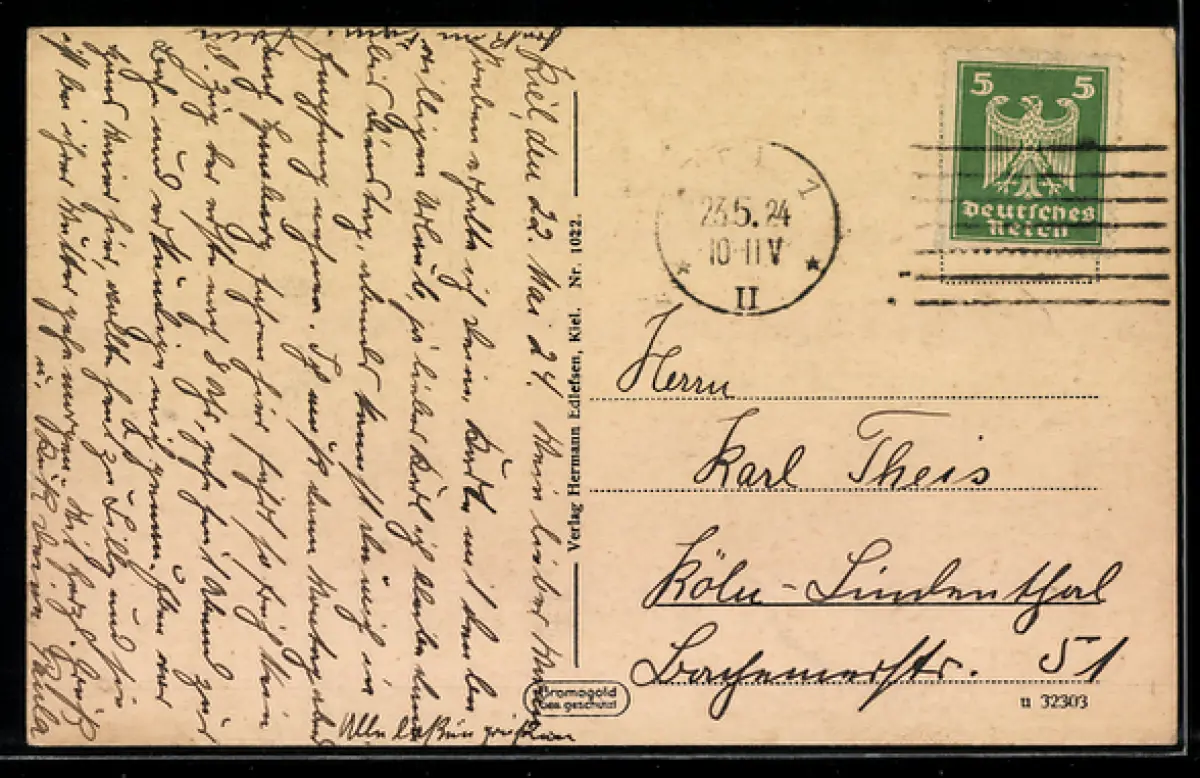 alte Ansichtskarte, gelaufen 1924, Abriebspur oben rechts, guter Zustand