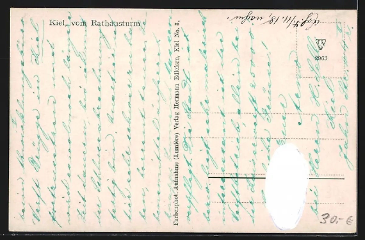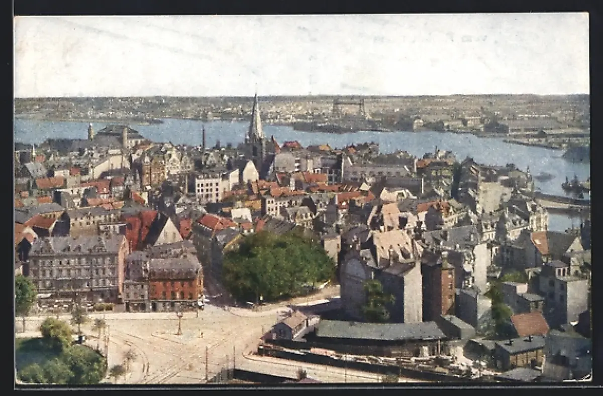 AK Kiel, Stadtansicht vom Rathausturm aus