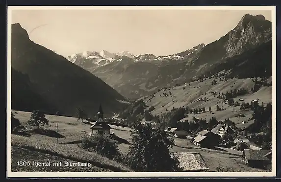 AK Kiental, Ortsansicht mit Blüemlisalp