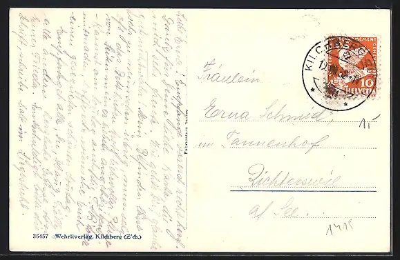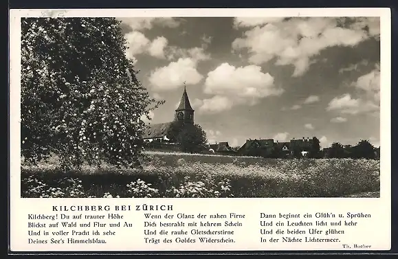 AK Kilchberg, Ortspanorama mit Kirche, Gedicht