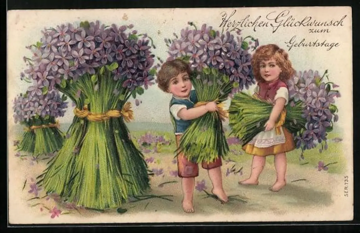 AK Kinder bei der Veilchen-Ernte